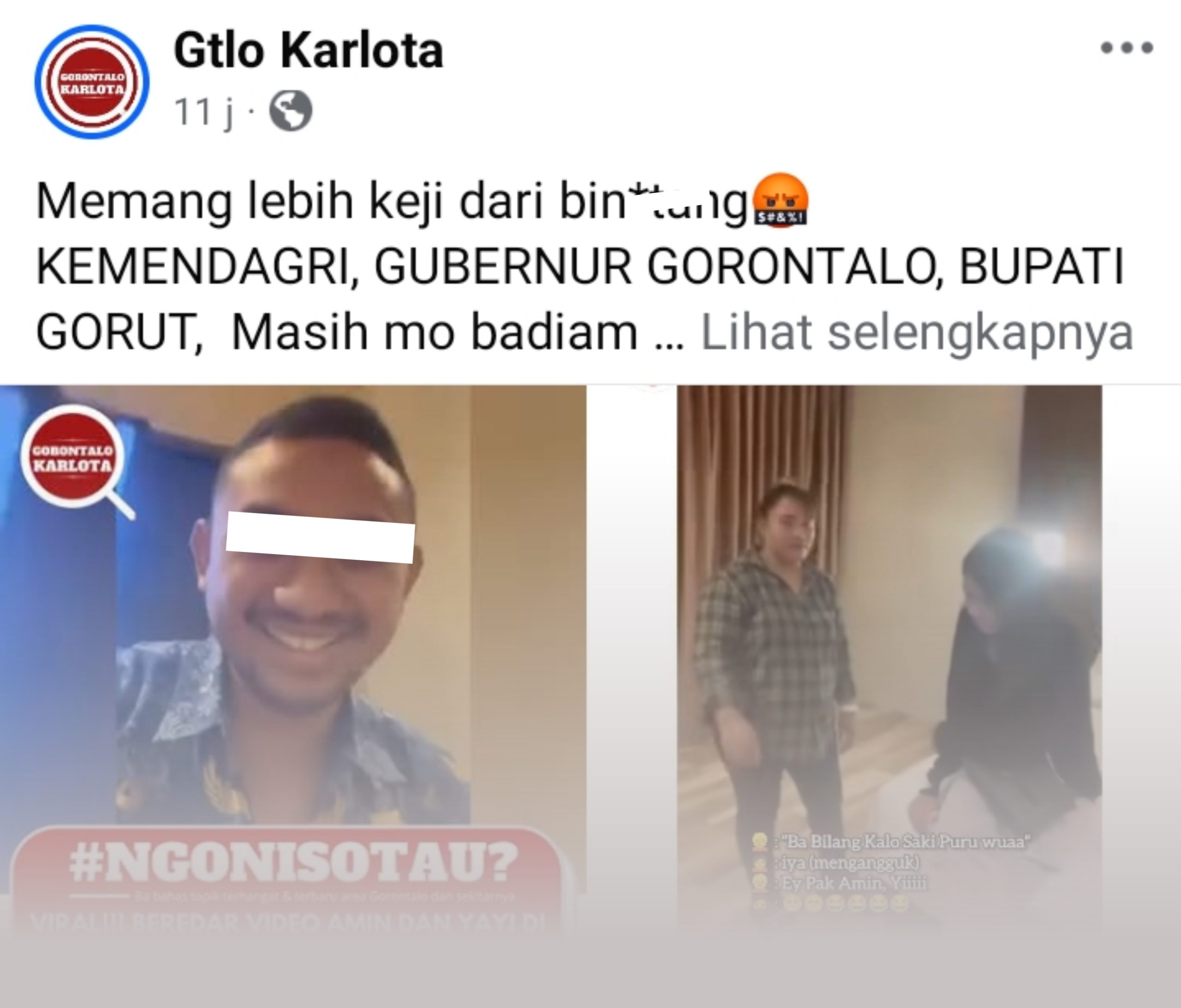 “Memang lebih keji dari bin***g. KEMENDAGRI, GUBERNUR GORONTALO, BUPATI GORUT, masih mo badiam ngoni? Keparat satu ini jelas-jelas memakai Seragam Kebanggaan KORPRI dalam situasi seperti ini.”